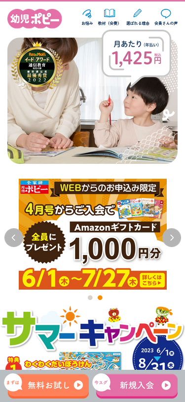 一般的な幼児向け通信教育では「入会金」はかかりません。