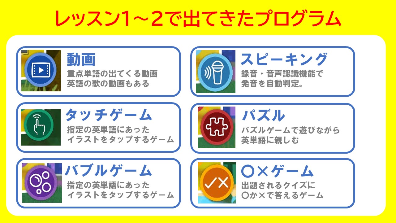今回は、動画やゲーム(といっても学習コースのプログラムと同じ)でしか使えません。