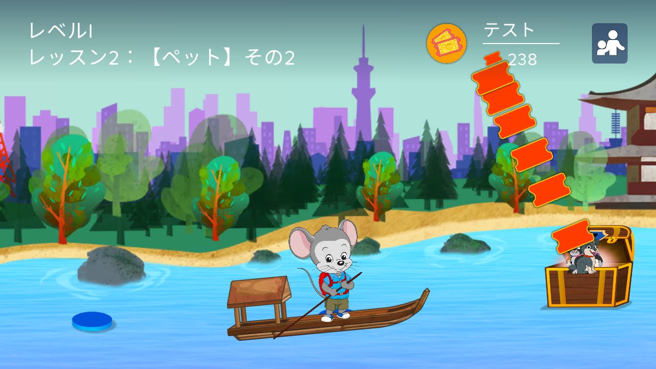 真ん中の大きなホワイトボード(ねずみのうつってる)をタップすると、さっきの「がくしゅうコース」の画面になります。