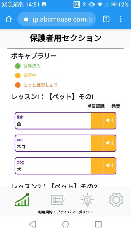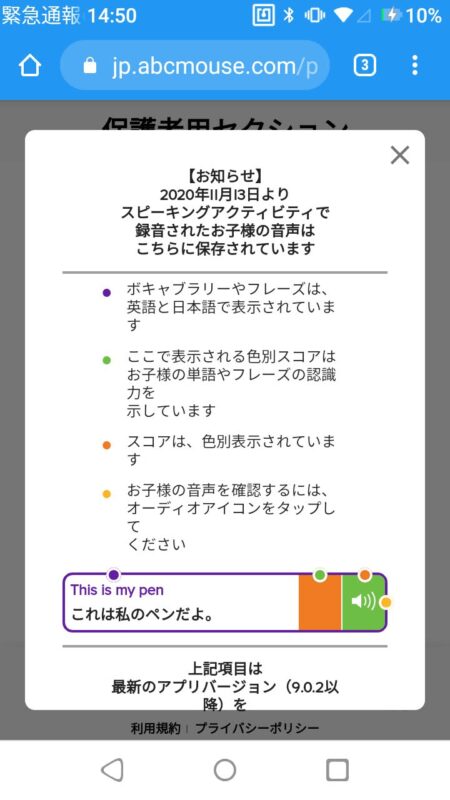 これには娘がイライラしてしまい、学習コースで「マイクのマーク」が出ると、嫌そうな顔を見せます。