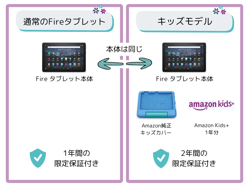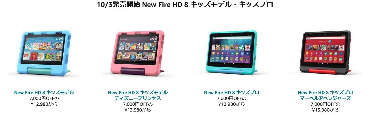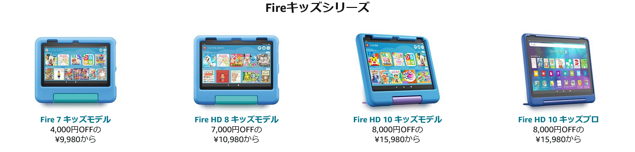 | 1年間のアマゾンキッズ(旧:Amazon FreeTime Unlimited)付き (プライム会員年額4,800円相当、一般会員年額9,800円相当) | 特になし |