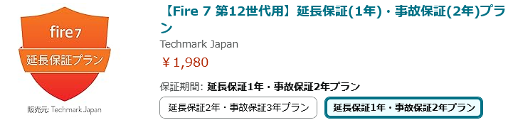 | 2年間限定保証 | 1年間限定保証 (+2,580円で2年間に延長可) |