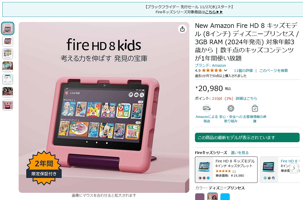 キッズモデルで購入して、キッズモードを使わずにFire7として使うことも実はできたりします。