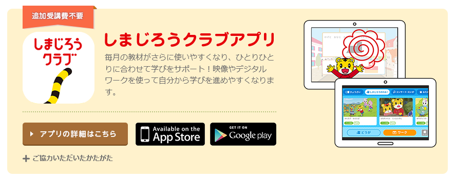 2021年度の教材から、追加のサービスとして「しまじろうクラブアプリ」が配信されます。