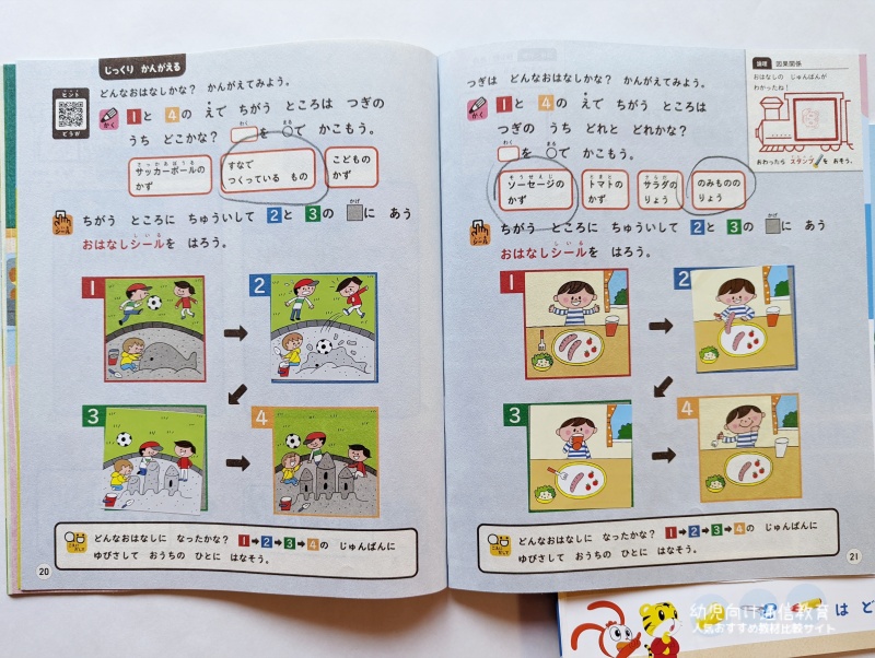 どちらの教材にも良い違いがあり、幼児教材とはいえ全く同じものではありませんでした。