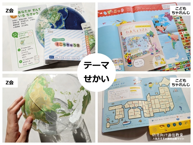世界へのアプローチのしかたが、Z会は立体的、こどもちゃれんじは平面的という違いがあります。