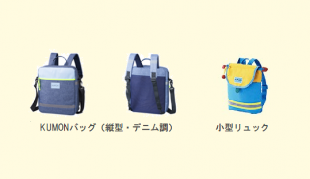 教室生徒は、KUMONバッグを1つ無料で提供を受けることができます。なお、KUMONバッグは長期間の使用に耐えられるように製作されていますが、4年以上使用され劣化した場合は、公文式教室の指導者に対して申出を行うことによって、新しいKUMONバッグが教室生徒に提供されます。