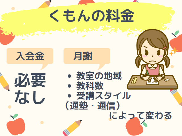 他には、通塾する教室ごとに「冷暖房費」などの諸費用がかかる場合があります。