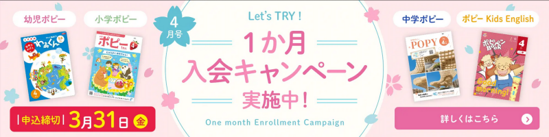 通常2ヶ月受講のポピーが、4月号を1ヶ月だけ受講できるキャンペーンをしています。