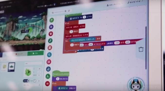 サイバーエージェントが開発したオリジナルの教材で、ビジュアルプログラミング言語で学習します。