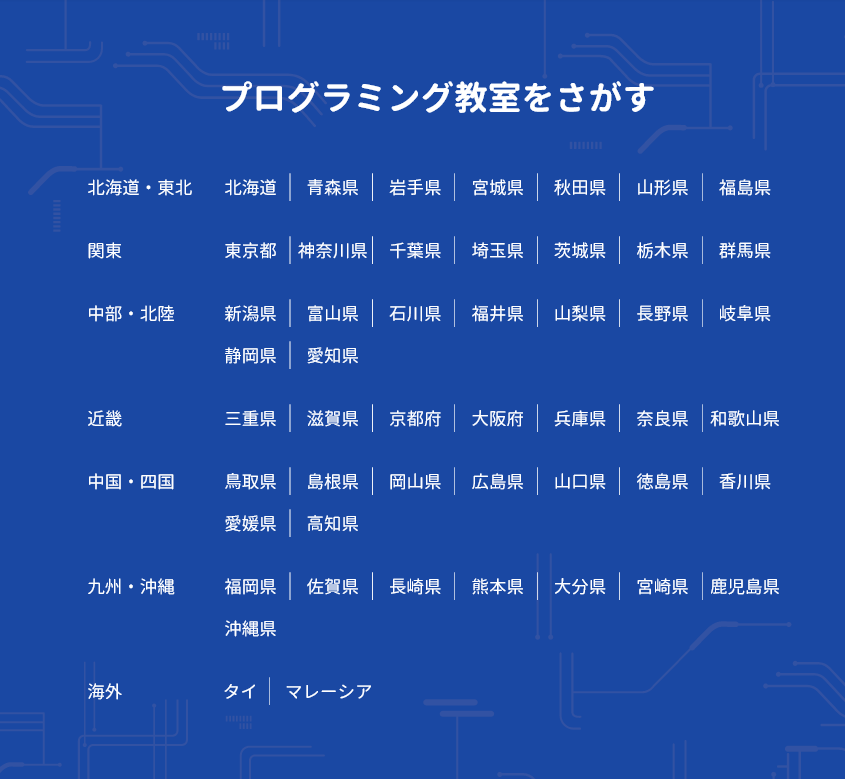 キュレオプログラミングスクールは、全国の学習塾などの施設で学ぶことができ通い安い立地です。