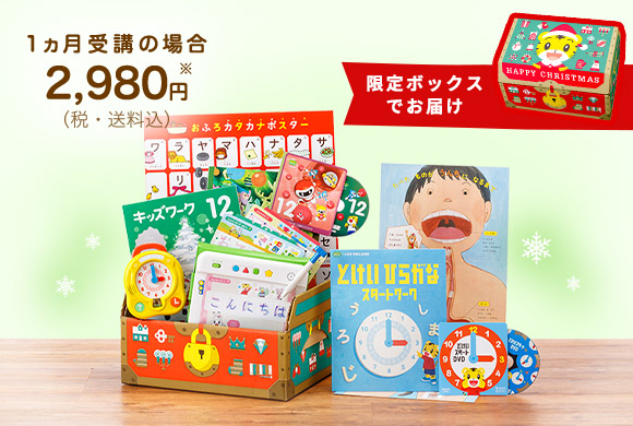 タブレット教材の場合、先行コンテンツが12月から随時配信されるので、クリスマス時期の申込みが飽きずにとりくめるぴったりのタイミングです。