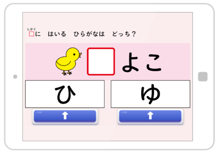 例えば「すいか」というひらがなをなぞった後に、果物のイラストから「スイカ」を探す。というようなもの。
