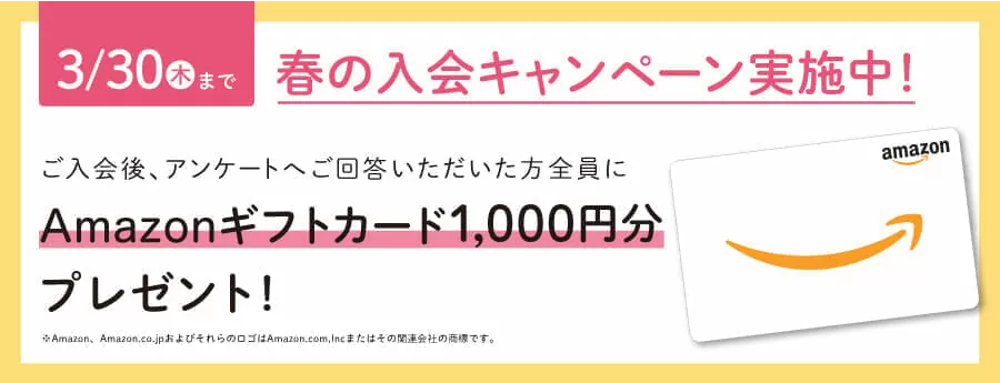 入会後アンケートに答えると、全員に1000円分のアマゾンギフトカードのプレゼントがあります。