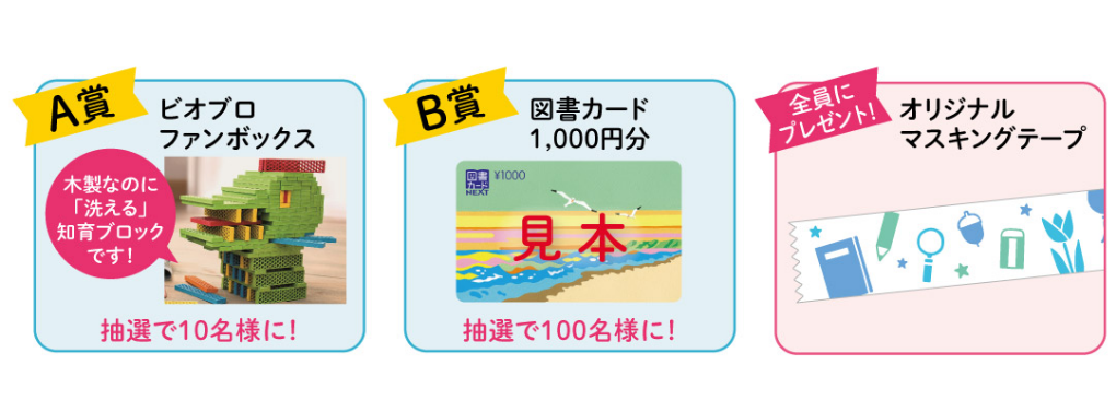 図書カードとは別に抽選でプレゼントがあたるキャンペーンもあります。