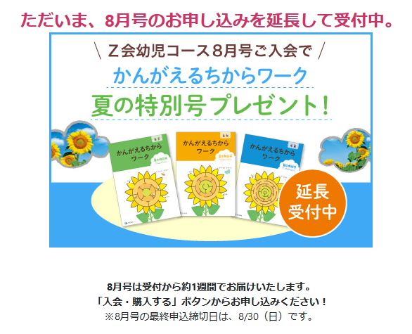 Z会幼児の資料請求でも夏はお試し教材に夏休み特別教材がついてきます。