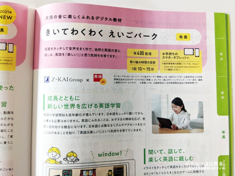 こどもちゃれんじの「こどもちゃれんじイングリッシュ」や、ポピーの「ポピーキッズイングリッシュ」のように、英語に特化したコース設定が、Z会にはありません。